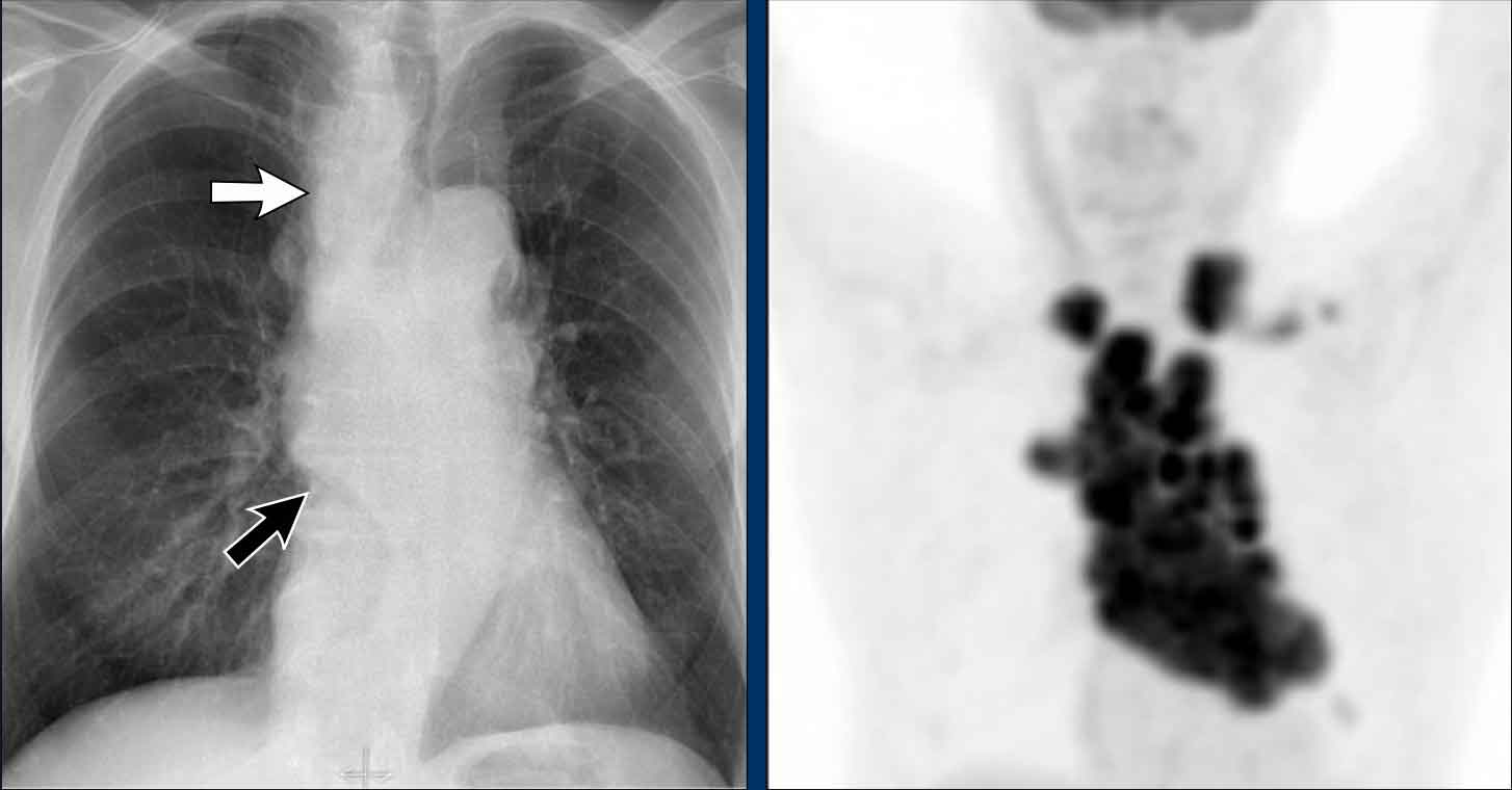When the superior mediastinum appears widened on the PA view, the lateral view is useful to localize the abnormality.