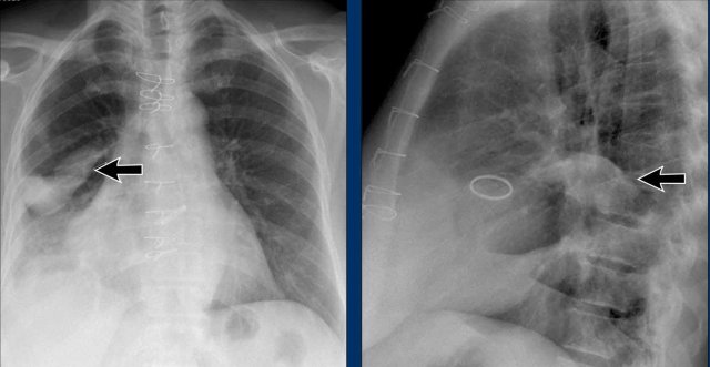Understanding normal hilar anatomy on the lateral view facilitates detection of abnormalities.