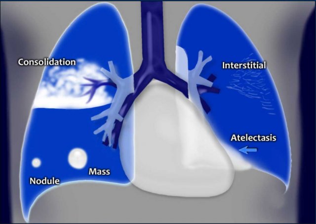 • Silhouettes (e.g., the aortic knob or left ventricular contour)